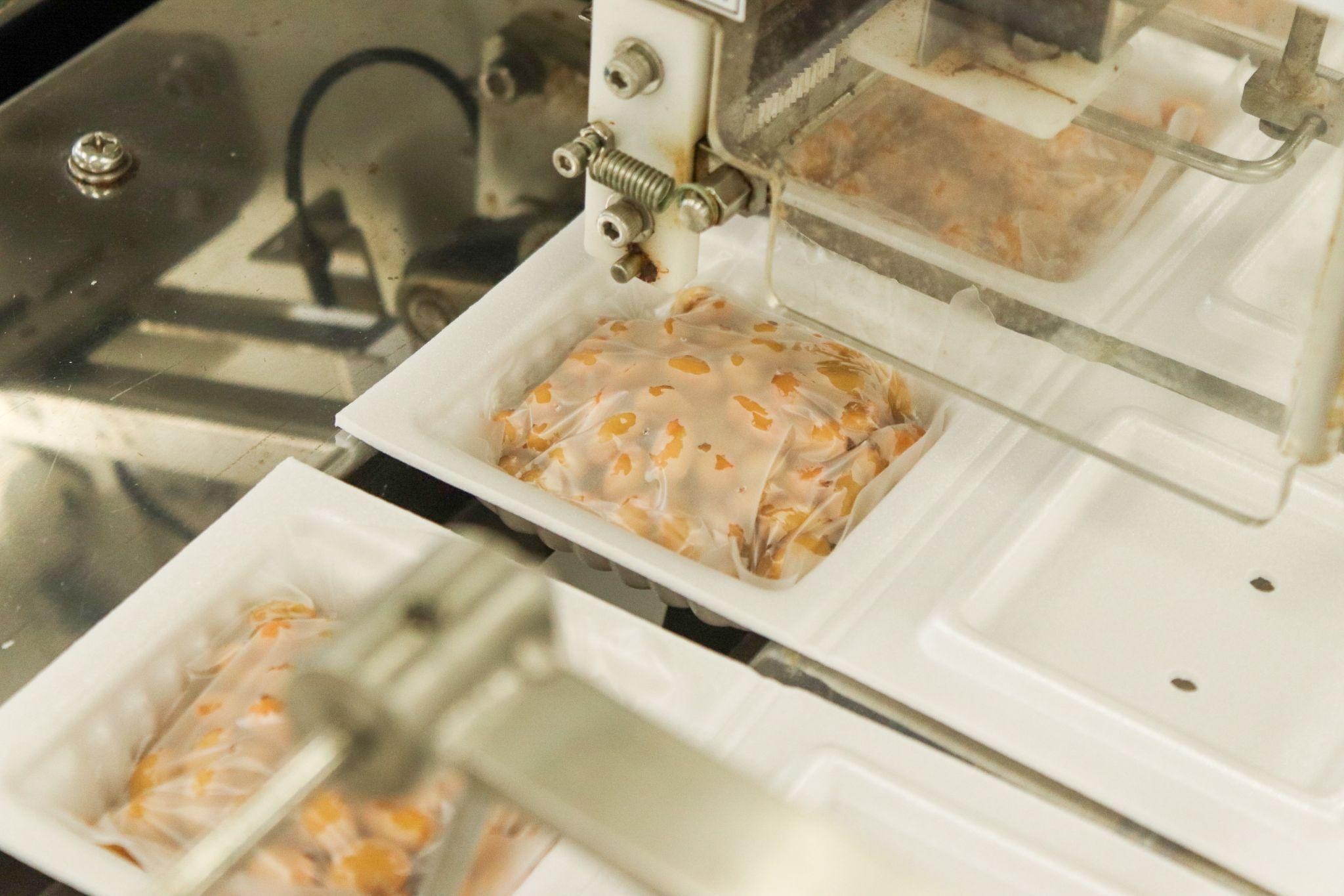 工場を訪ねてみると、手入れの行き届いた作業場で影山さんが黙々と納豆のパック詰めに取り組んでいました。国産大豆を使い、独自の製法で匂いを抑えたふっくらとした納豆は、「納豆が苦手でも食べられる」と評判です。