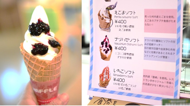 甘酸っぱいナツハゼジャムは、ソフトクリームと相性抜群